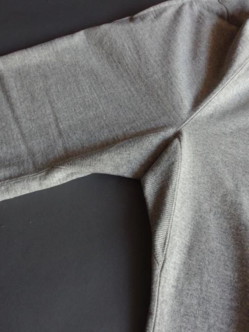 生地は表裏共にウォッシャブルの紡毛ウール素材となっており、がっちりと度目を詰めて編まれたウール100%の裏毛地が使用されています。
