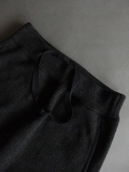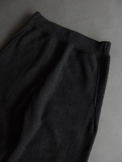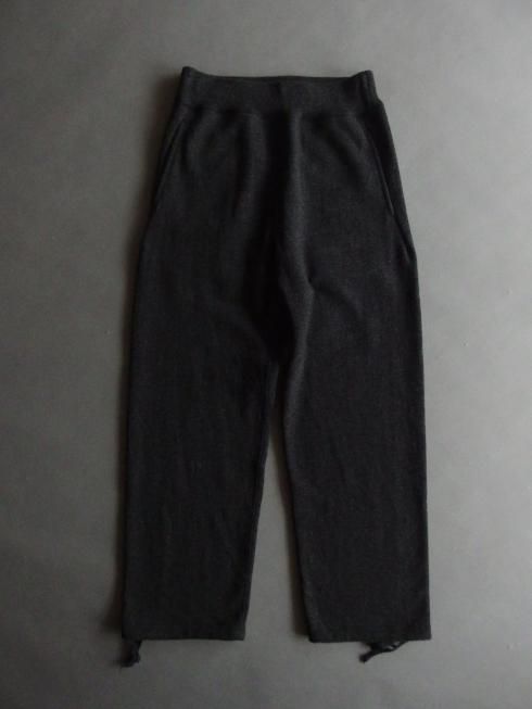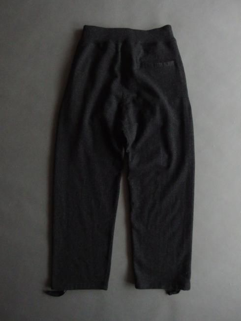 <商品説明> Slopeslow 2025A/W ヴィンテージのトラックパンツのイメージで、股下にマチを入れたパターンが特徴のスウェットパンツです。 フラットでイージーなパターンのヴィンテージとは違い、しっかりした肉感の生地を考慮し、体の動き分量を考えた前後差のあるパターンで製作されています。 生地は表裏共にウォッシャブルの紡毛ウール素材となっており、がっちりと度目を詰めて編まれたウール100%の裏毛地が使用されています。 ウール100%ということでケアのことも考えられており、製品洗いをかけて仕上げられています。 洗いをかけても寸法変化がほぼないという頑丈さも特徴です。 ウエストリブや股下のマチには共糸で編み立てた横編みリブを使用し、より快適な履き心地を実現しています。 暖かく、動き易さを備えていながらもスラックスのような美しいシルエットなので外着としても様になる非常に優れた一本です。 コーディネートに適度な抜け感を与えてくれますので、クラシックなコートやジャケット、革靴とのスタイリングはとても雰囲気が良くオススメです。 お使いいただく中で間違いなく、いわゆるスウェットパンツとは一線を画す一本だとご実感いただけるスウェットパンツとなっています。 【素材】 ウール100