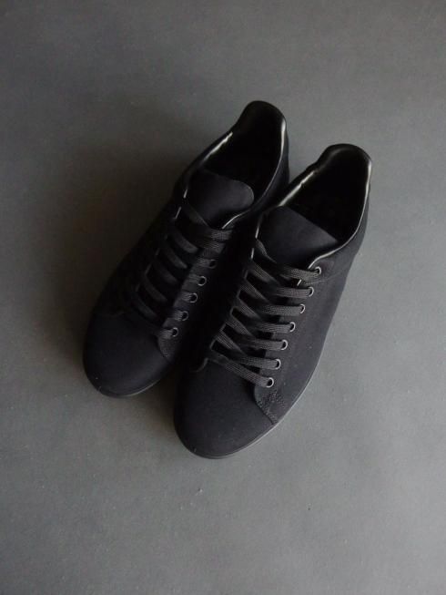 <商品説明> MOONSTAR | RALY デザインやディテールに没頭し、蓄積した知識から湧き上がる様々な要素を定番的なコートという1つのフォーマットに落とし込み、その印象の変化を表現していくラインRALY(ラリー)。 雑念にとらわれず素材の質感や特徴に集中できる黒のみの一色展開も特徴です。 こちらのモデルは織りの細かいキャンバスを使用し、美しいシルエットを追求した王道的なパターンのコートタイプ。 芯材や貼り合わせ糊など各部にゴム由来の素材を使用し、アッパーの段階で加硫することで立体形状を記憶させています。 シックなルックスながらも高いクッション性と軽やかな履き心地でデイリーユースに向いたシューズとなっています。 【素材】 ・アッパー キャンバス ・ソール TPE