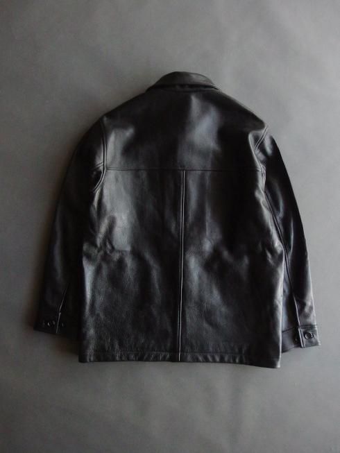 クラシックなスタイルのカーコートをベースに製作されたレザージャケット。