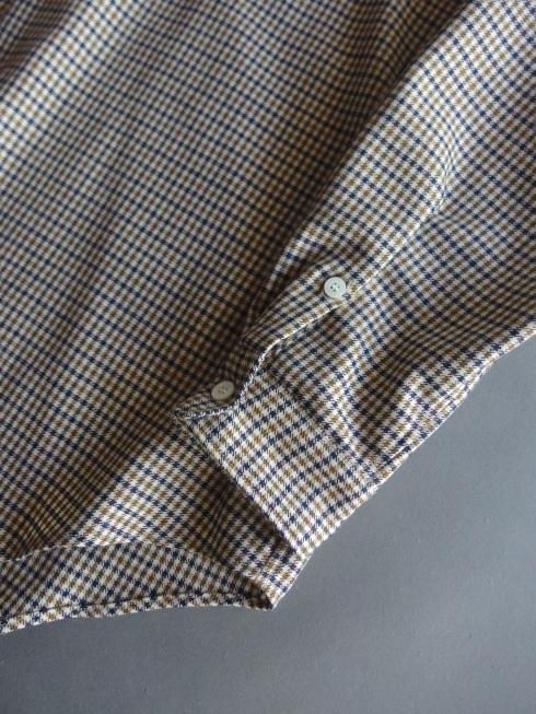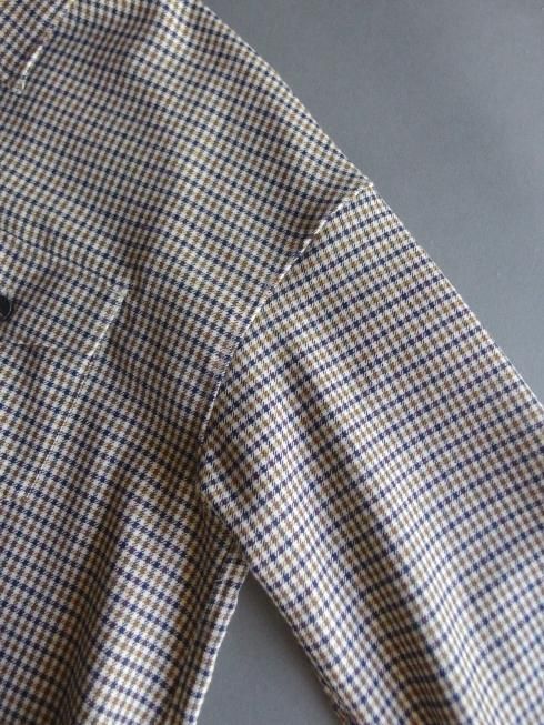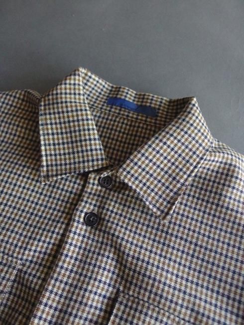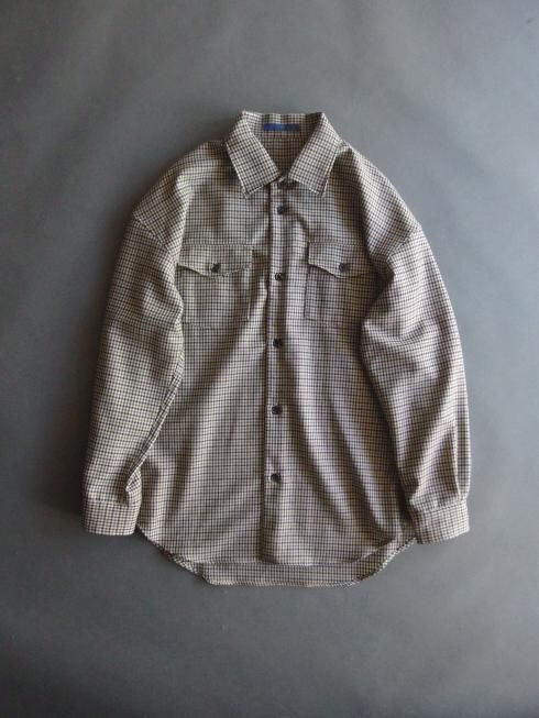 semoh 2025A/W ブルゾンの要素を落とし込んだシャツに落とし込んで製作されたシャツジャケットです。 リラックス感のある着心地はもちろん、現代から未来へ繋がる普遍的なベーシックさの表現にも重きを置いてデザインされたsemohらしい一着。 現代のガジェットなど様々な小物が収納できる容量大きめの胸ポケットは日常使いに便利なサイズに設計されています。 生地には国産ウールで織り上げられた品の良い綺麗なガンクラブチェック柄の生地を使用。 上質なウール特有の上品な落ち感がありますので、シャツとしてはもちろん、ジャケット感覚で羽織っても美しいシルエットになります。 クラシックなトラウザーズと合わせて綺麗なスタイリングでお楽しみください。 【素材】 ウール100