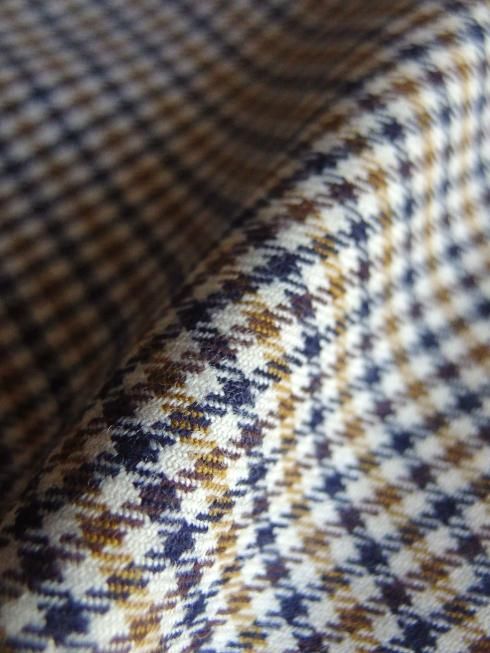 生地には国産ウールで織り上げられた品の良い綺麗なガンクラブチェック柄の生地を使用。