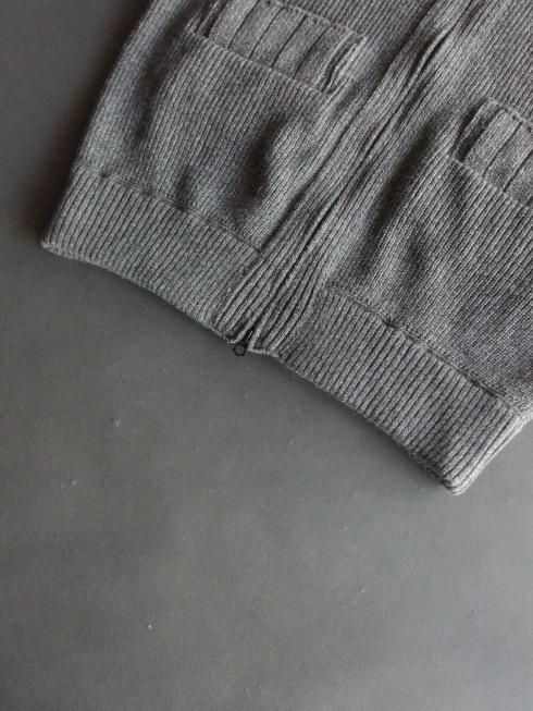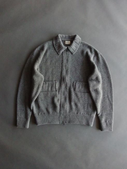 <商品説明> Nikki ESSENTIAL PIECES 2025A/W 「フライトジャケットをニットで作ってみたら」というテーマで製作されたニットブルゾン。 ヤクの糸にウールカシミヤの糸を撚糸することで更に膨らみを持たせた7ゲージのバルキーな編地が使用されています。 フロントの両サイドの低めの位置に配置された太いリブ幅のポケットのアンバランスさによって、さりげない個性を感じさせるルックスが特徴。 襟とポケットはゲージが変えられており、よりバルキーな仕上がりとなっています。 ニット素材の為、カーディガン感覚で気軽に着用できるジャケットです。 適度にゆとりを持たせたシルエットはアウターとしてはもちろん、アウターのインナーとしても使える非常にバランスの取れた一着となっています。 【素材】 ウール49 ヤク48 カシミヤ3