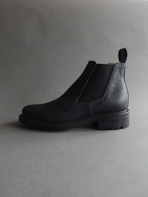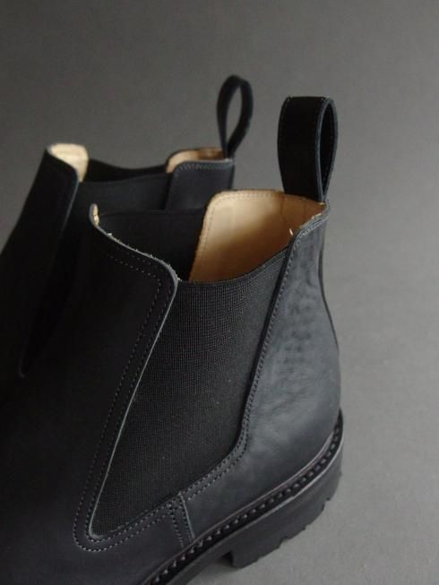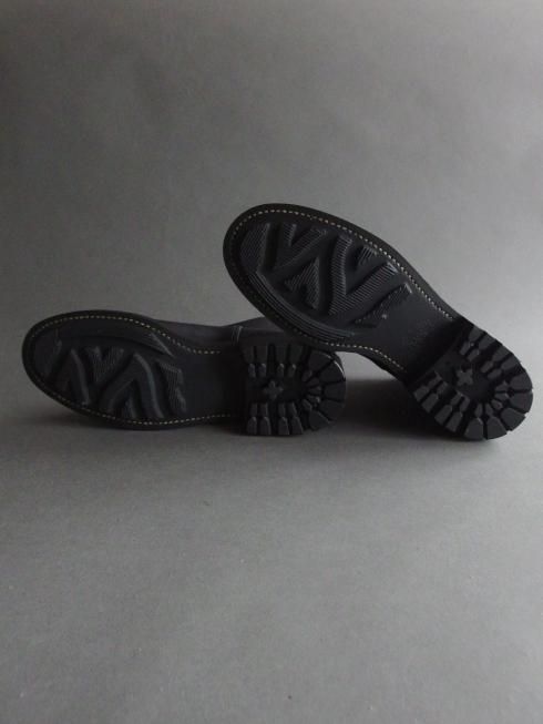 アッパーにはイタリア製のホースバットを使用。コードバン層を含むお尻の革で吟面は粗く仕上げられており、新品時は掠れた色味が特徴的な黒色ですが着用を重ね、オイルを塗っていくことで鈍い艶のある黒色へと変化していきます。