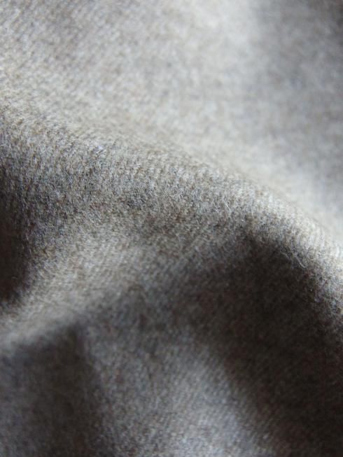 生地には経糸にウール、緯糸にカシミヤ混の太い糸を高密度に打ち込むことで適度なハリとコシがありながらもカシミヤのウォーム感と光沢を感じるシャープなフラノ素材を採用。