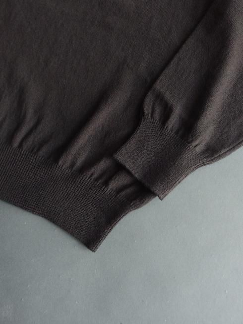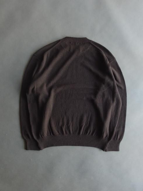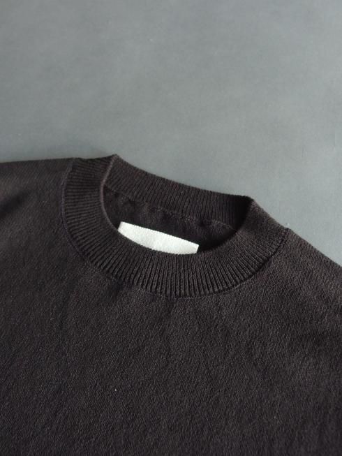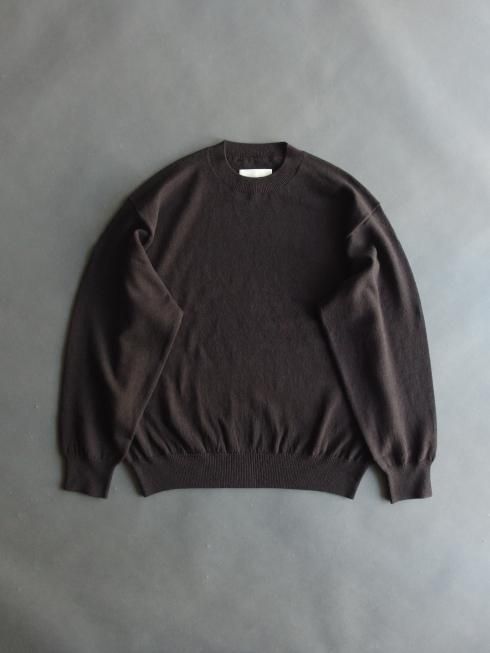 <商品説明> YOKO SAKAMOTO 2026S/S クラシックなデザインのクルーネックニット。 生地には10Gの天竺編みのコットンニットを使用。 通常の撚糸よりも3倍の工程を掛けて撚糸したコットンのハイツイスト糸を使用して編み立てられており、ハイツイストすることで糸が波状になり、糸自体の強度が増し、毛羽立ちがなくなりシャリ感と締まりが生まれます。 糸が波状になることでコットン100%ながらも程よいストレッチ性のある素材となっています。 適度にゆとりを持たせたシンプルなデザインでどんな服装にも馴染む品の良いニットです。 【素材】 コットン100